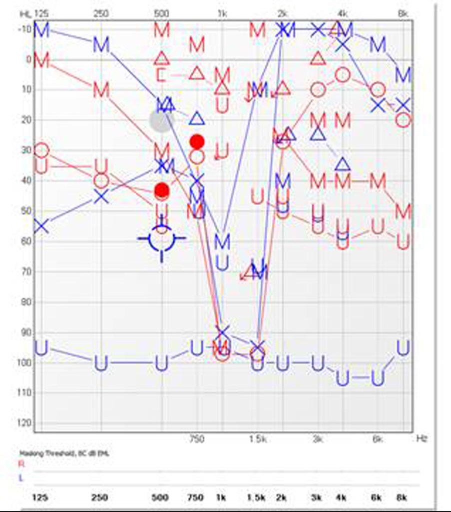 “We raised this Culture Club idea at our staff meeting, and some of my colleagues joined me in thinking of something to create. My colleague Nina joked that we could create a drawing on our audiometers (we use these to test people’s hearing and we create a graph of each ear’s hearing ability, red for right ear and blue for left ear). We had to be creative in our use of symbols, as you cannot use the same symbol at the same frequency twice, and also some symbols join together by creating a line between them, which in some cases can get in the way when you’re trying to ‘draw’ we found out!”