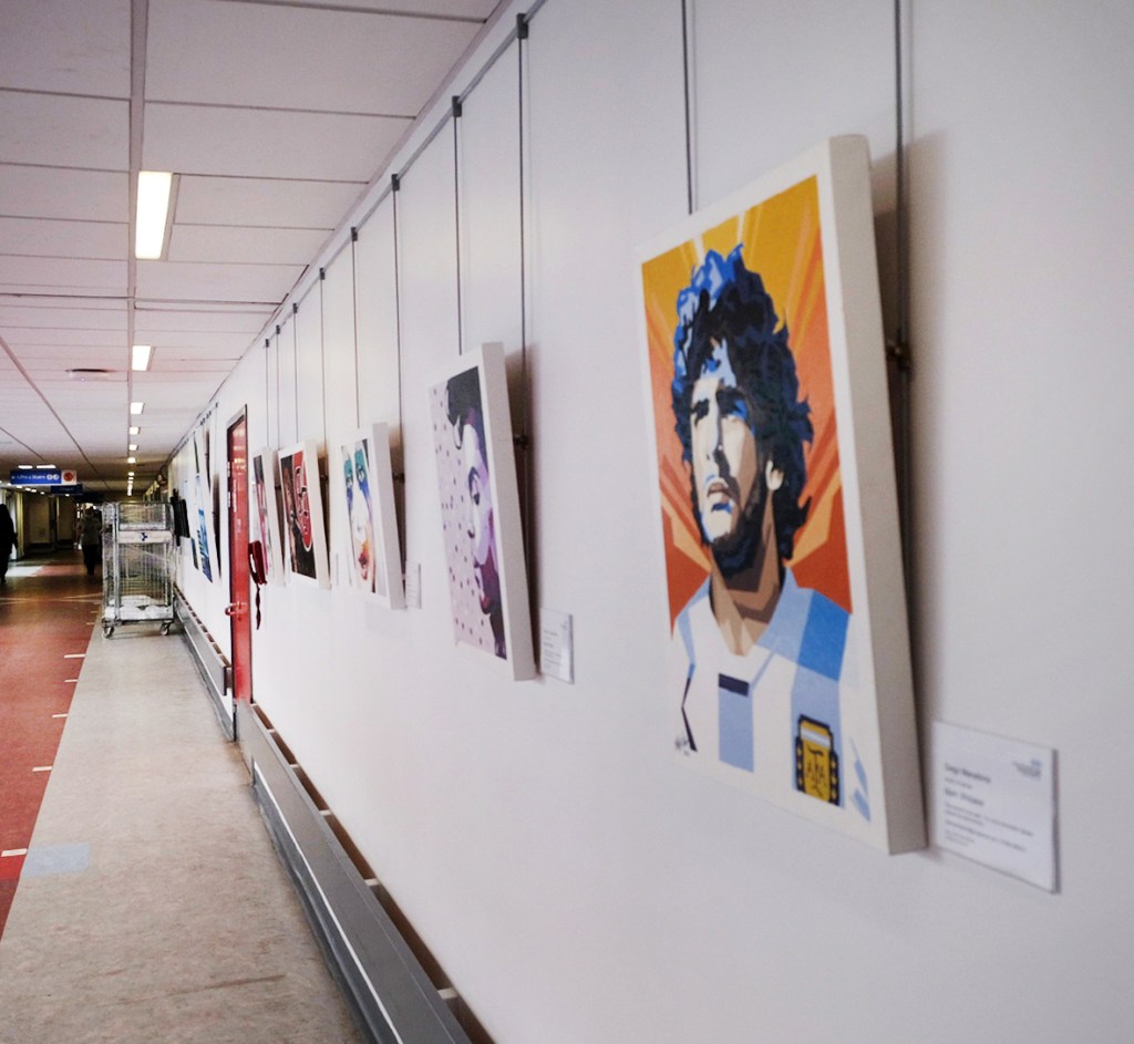 Local artist Mark Whitaker works in acrylic on canvas and has created an exhibition of sporting and musical heroes and icons.