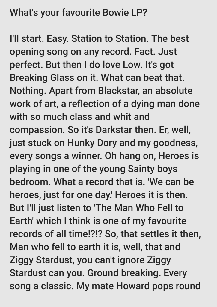 Martin Sainty on his favourite Bowie LP Posted byArts TeamOctober 20, 2021Posted inMartin, Music, Staff Takeover Share this (Facebook not available on Trust PCs): Click to share on X (Opens in new window) X Click to share on Facebook (Opens in new window) Facebook Like Loading... Related