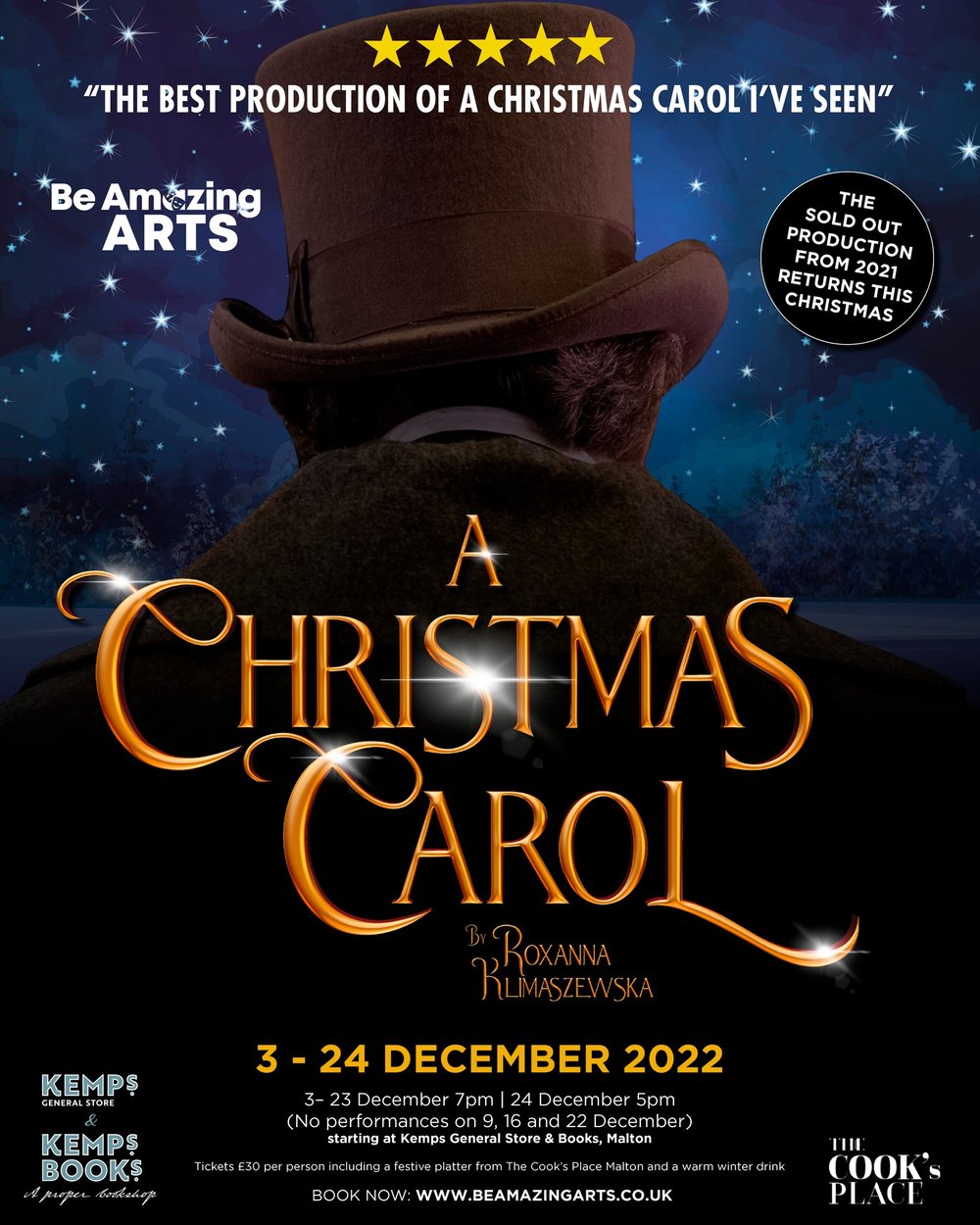 A Christmas Carol An immersive dining and theatre experience in the streets and buildings of Malton. 3rd – 24th December.